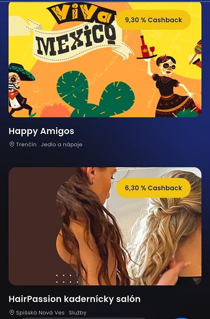 Aplikácia WEXO vám zobrazí firmy, podniky a ich adresy vo vašom okolí podľa vašej aktuálnej, zdieľanej polohy, poprípade podľa vášho zadania miesta, rovnako vám aj zobrazí % výšku cashbacku u jednotlivých firiem. Teda presne viete, v ktorom obchode, firme sa oplatí nakupovať a o to viac si budovať svoj majetok.
