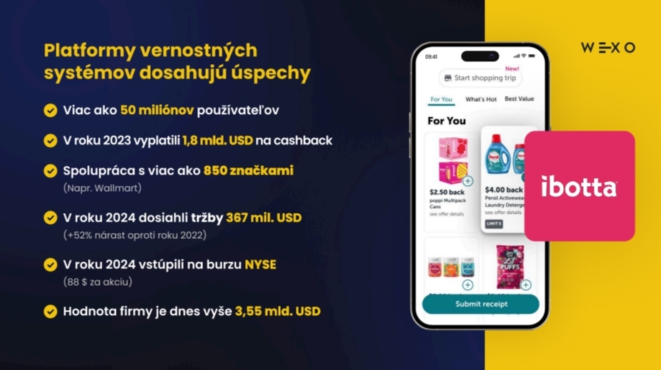 WEXO cashback aplikácia sa stále vyvíja, každý mesiac pribúdajú nové funkcionality a možnosti zaujímavých a užitočných služieb pre používateľov. Už dnes má viac ako 1885 obchodných partnerov. Medzi najznámejších patria nadnárodné obchodné reťazce Tesco, Lidl a Kaufland. Viac ako 222 000 stiahnutí tejto aplikácie hovorí za seba. Teda má všetky predpoklady stať sa super modernou aplikáciou na celosvetovom trhu a zároveň najlepšou investíciou, ktorú môžete urobiť.